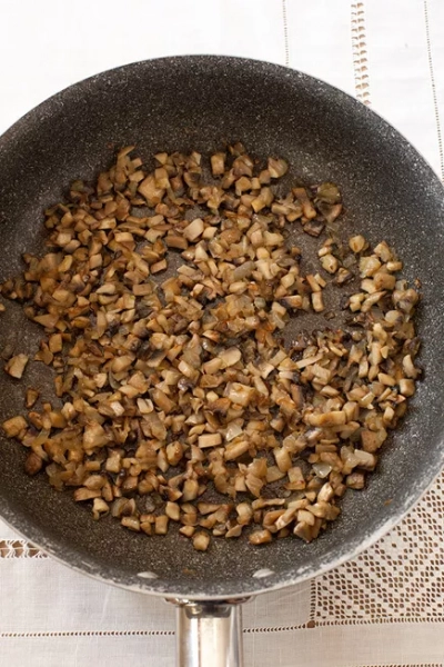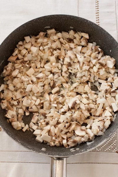 4. Обжарить лук и грибы на 1/2 ст. л. оливкового масла.