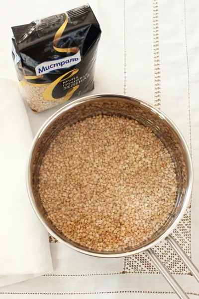 • 1 стакан зеленой гречневой крупы «Мистраль»