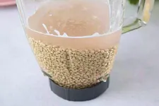 Набухшую гречку пробейте в блендере с 1 стаканом воды и солью до густой консистенции. Если будет очень густо, можно добавить еще немного воды