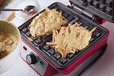 Разогрейте вафельницу, смажьте кокосовым или любым другим растительным маслом