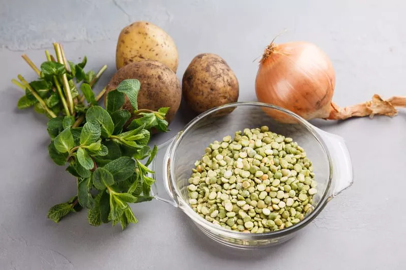 1. Горошек промойте, залейте двумя стаканами питьевой воды и оставьте на час-полтора.