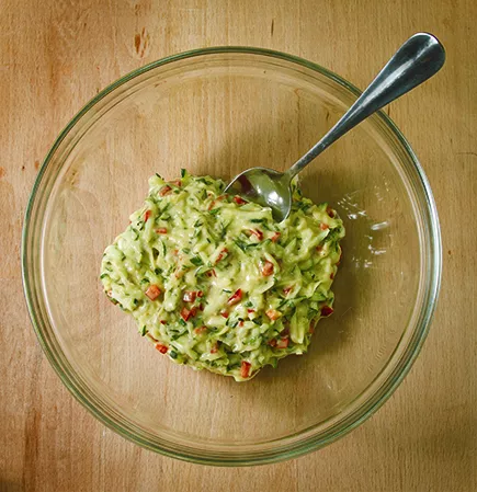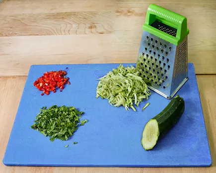 1. Мяту и перец мелко нарезать. Цуккини натереть на крупной терке.