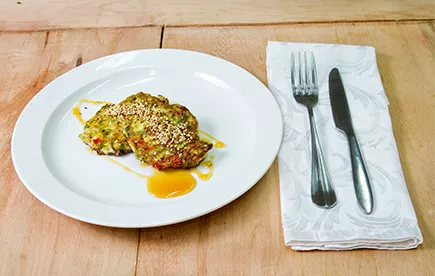 Наш выделяется среди прочих: в нем нет ни яиц, ни молока, ни даже сливочного масла. И тем менее наши оладьи, в которые мы добавим болгарский перчик, мяту и мед, не менее вкусны.
