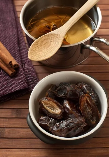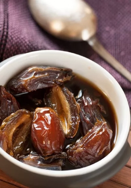 2. Оставить 1 столовую ложку готового сиропа для кускуса. Оставшимся сиропом залить финики, дать полностью остыть.
