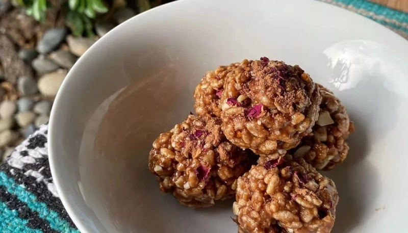 5. Посыпьте сверху какао-порошком и высушенными лепестками роз, чтобы украсить. Подавайте и наслаждайтесь.